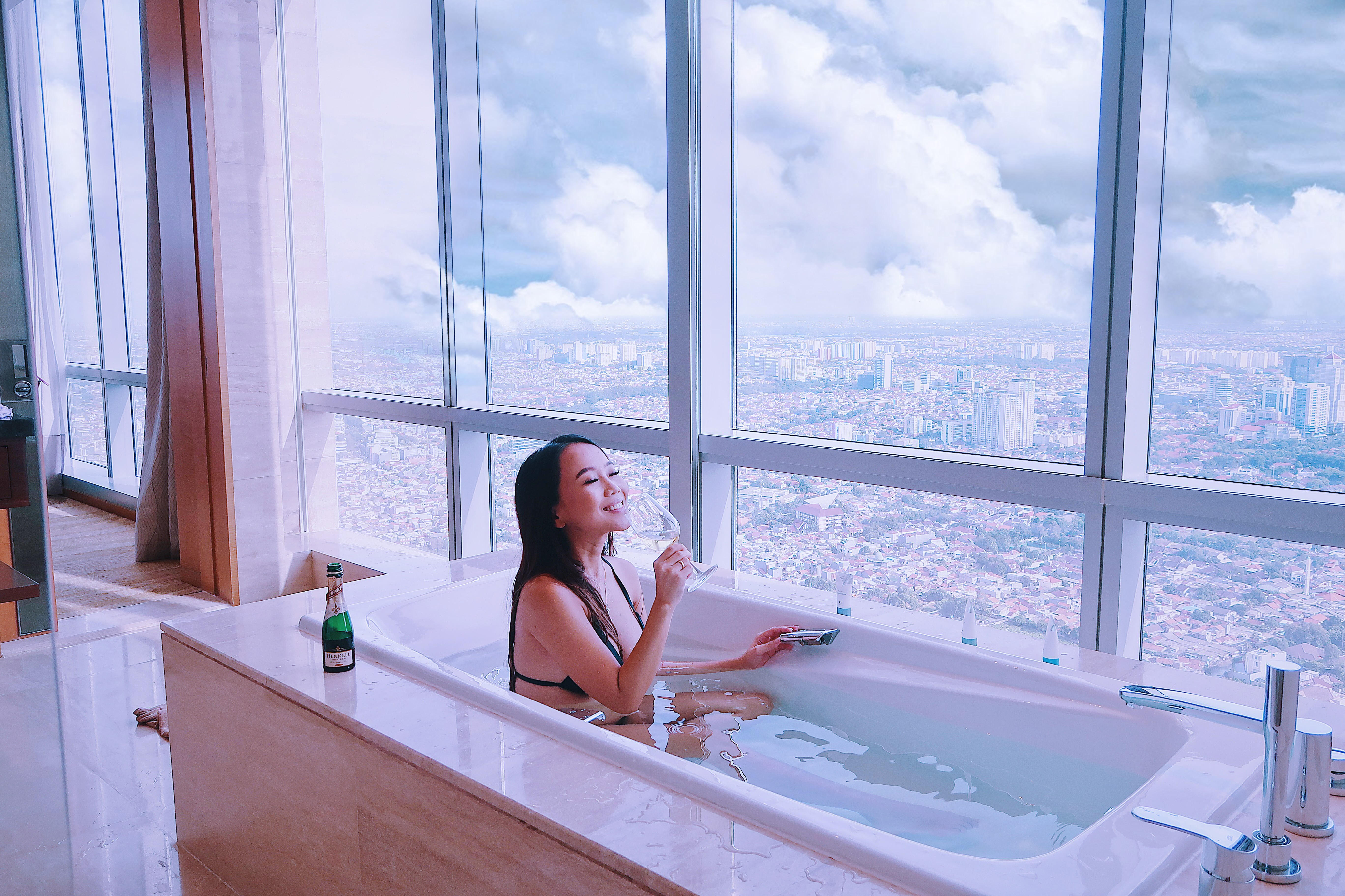Checked in time was smooth and the reception explained all the facilities very clearly. Only took 5 minutes to be with at the receptionist (as a standard of a five stars hotel). We booked a Premier room, it was spacious, and I love the interior in the guest room. We were staying on the 55th floor; we felt like we were sleeping in the cloud. They also have all the switch for the lights and the curtains beside your bed table. The size of the bathroom is significant, and I spent my time at the bathtub with hot water and a good view. It was a good day. Bathroom amenities smells good; I cannot get over it.